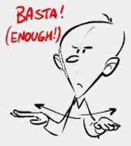 Alza il braccio verso il cielo con uno sguardo annoiato o divertito. Significato: “Smettila di dire sciocchezze! “, ” Non ha senso “.