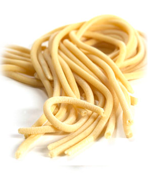 Although you can use any type of pasta, the tradition requires to use bucatini (large spaghetti  hollowed in the center).